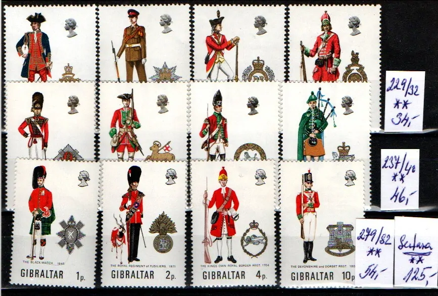 Gibraltar, historické uniformy, tři série dle popisků, xx. 13.07.2024