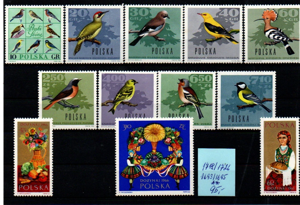 Polsko, serie ptáci + lidové umění, atraktivní sestava xx, dobrá cena. 21.12.2025