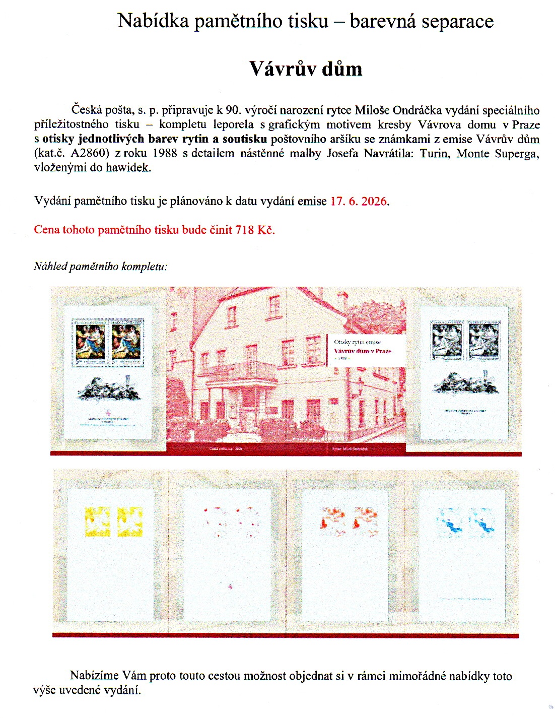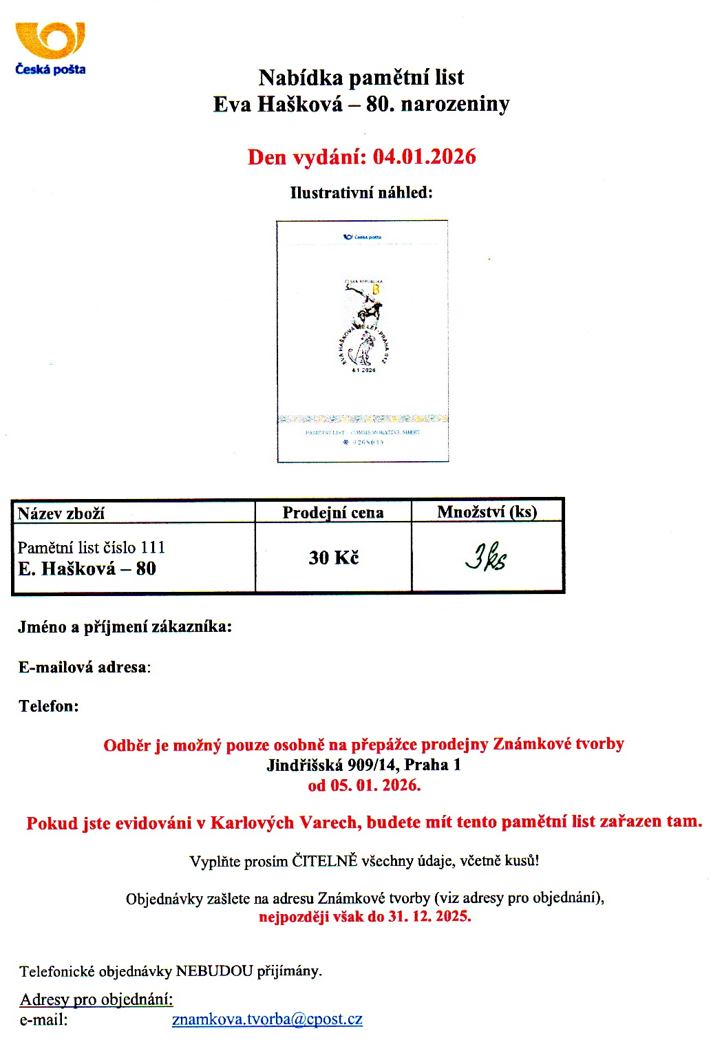 Objednávky zasílejte na email : znamkova.tvorba@cpost.cz
