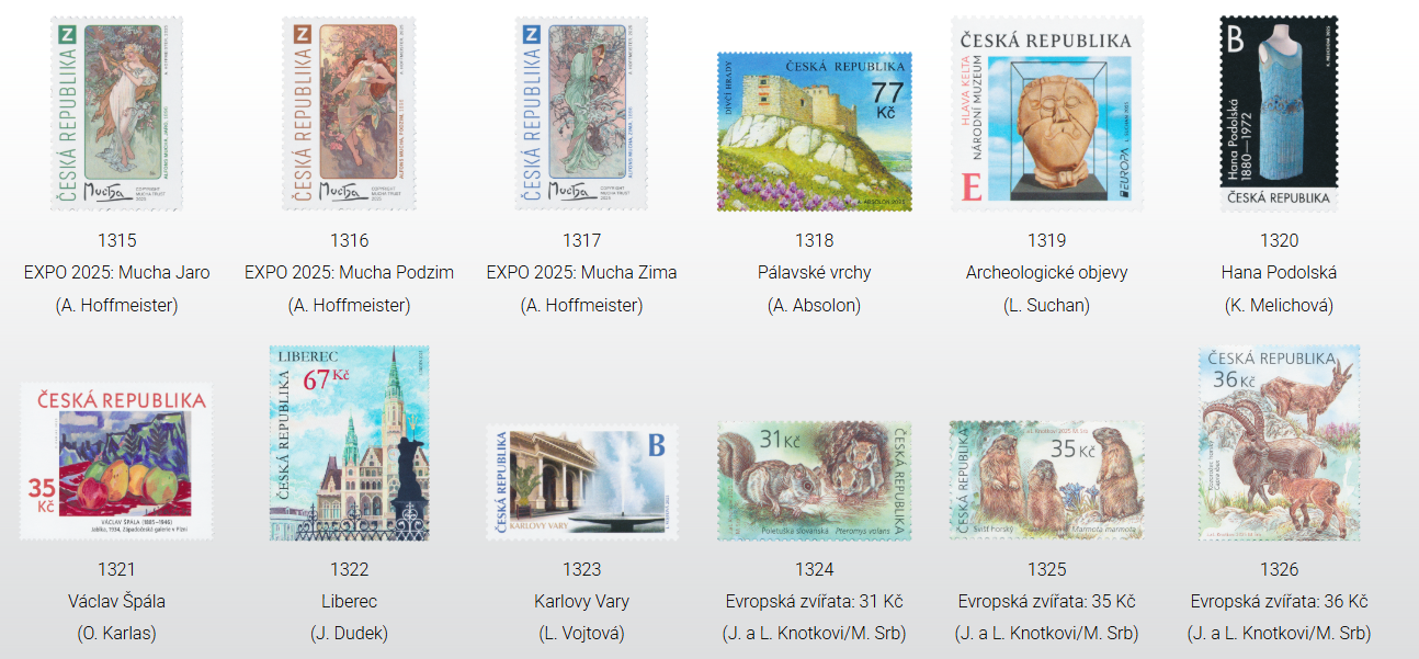 - Přehled vydaných známek v roce 2025