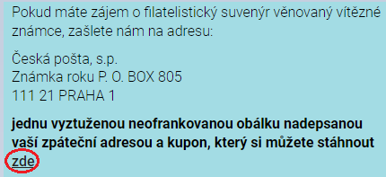 - hlasovací kupon musí být odeslán v ofrankované obálce na adresu: