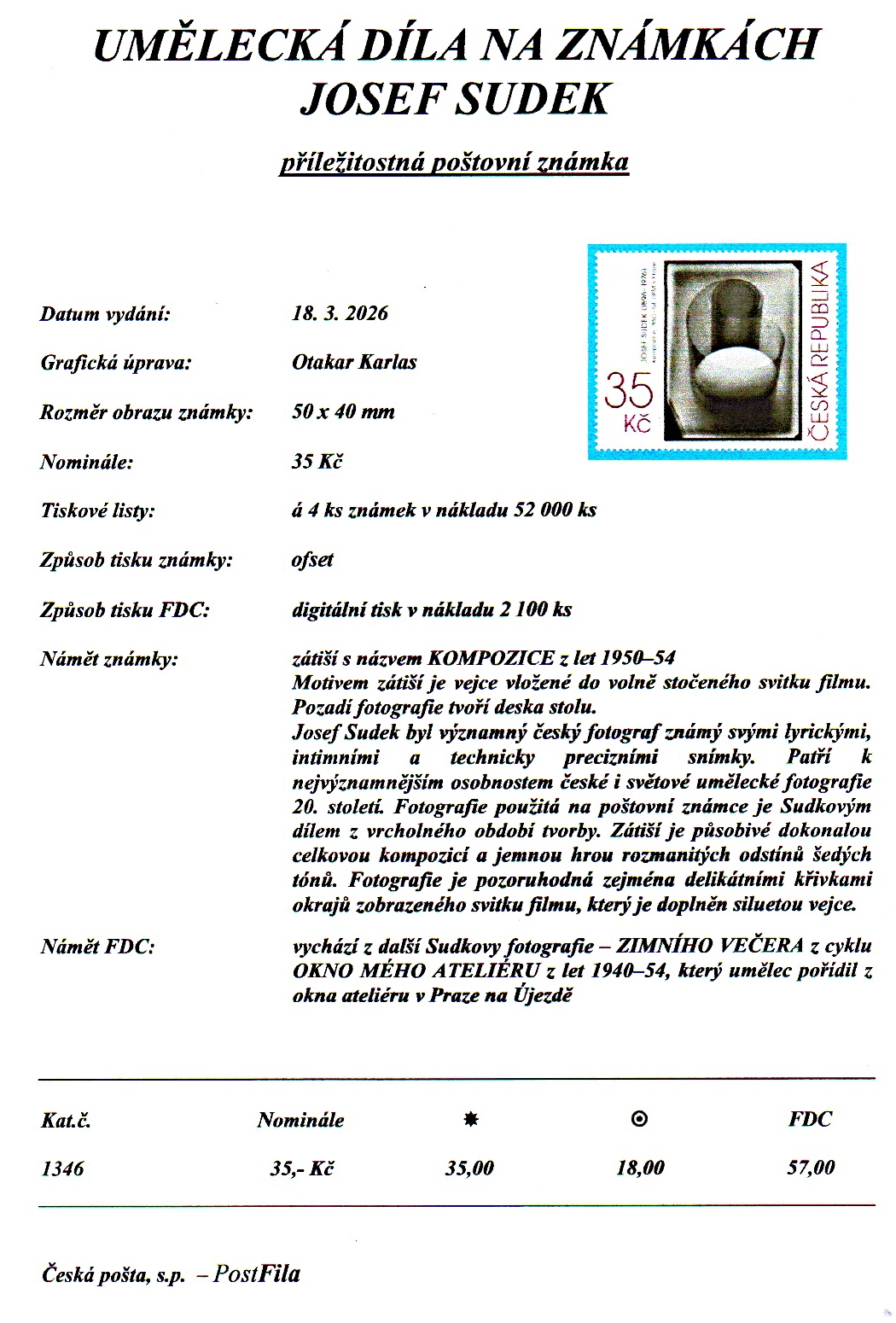 Novinky známek vydávané 18.03.2026