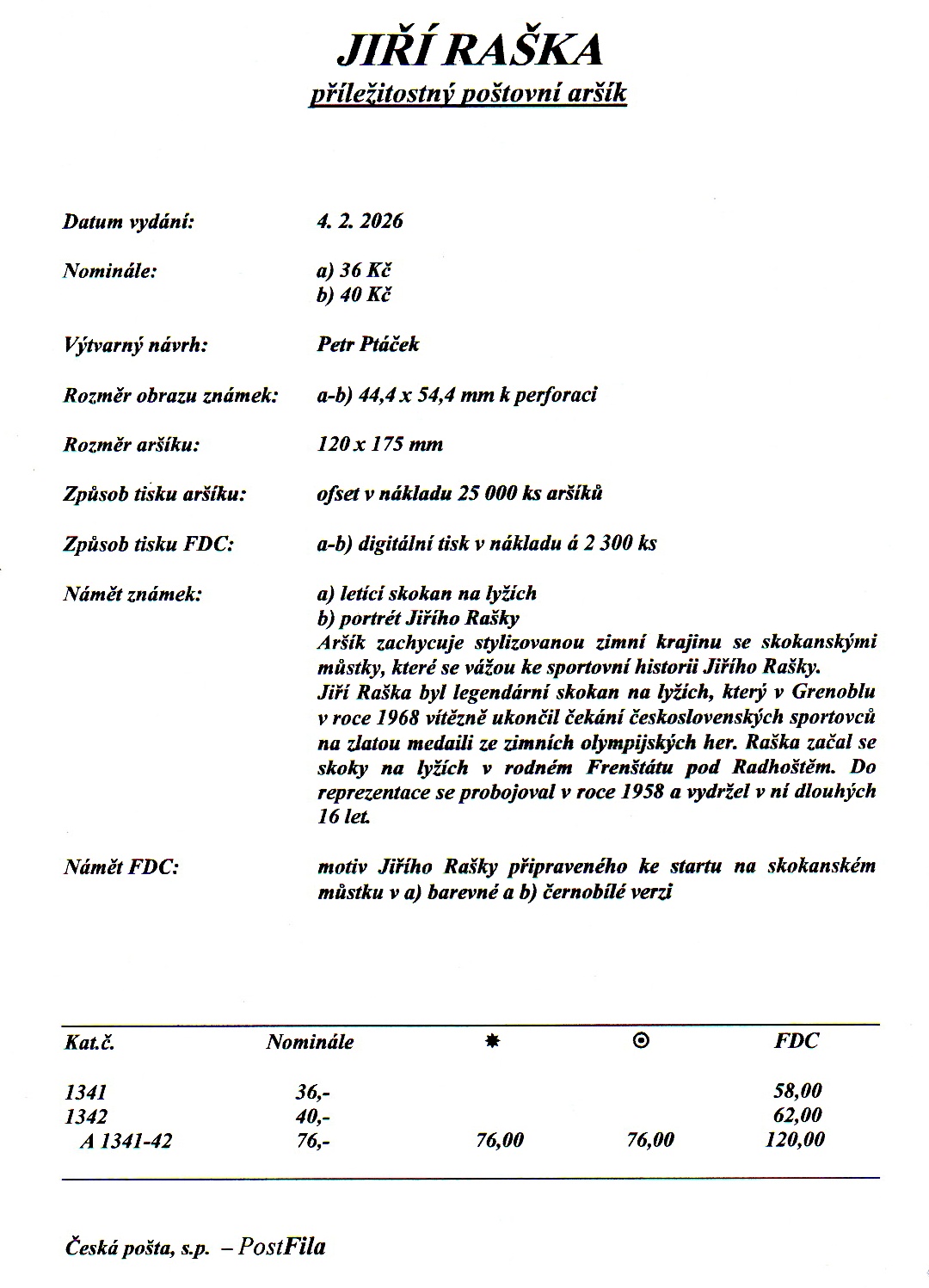 23.01.2026 - Přidány nové položky v rubrice nabídek Fauna-Flora. V sekci Novinky-Slovensko je ukázka nově vydávaných známek k ZOH 2026. A v sekci Novinky ČP najdete nabídku dvou připravovaných PT a to Loreta Praha a Vávrův dům.